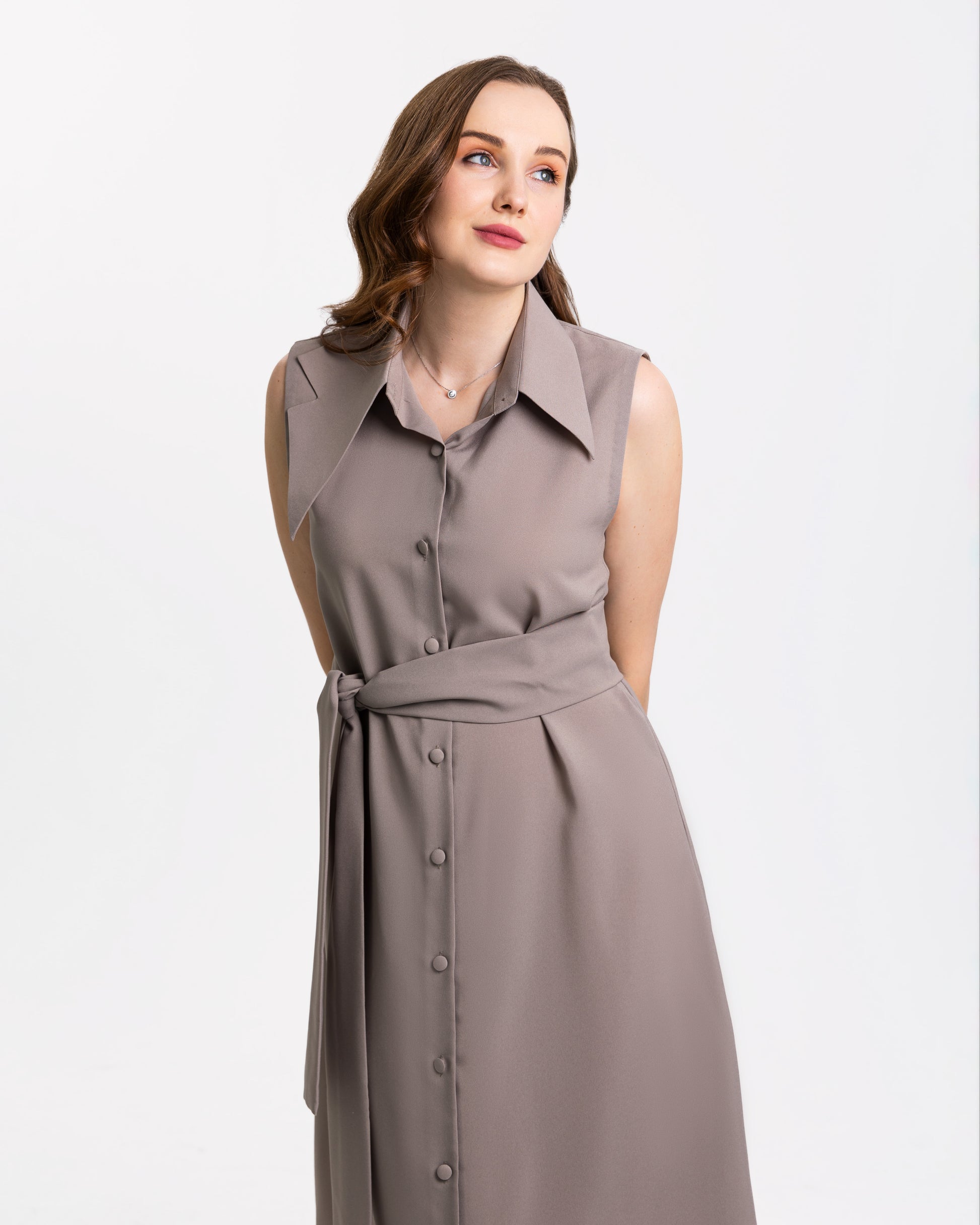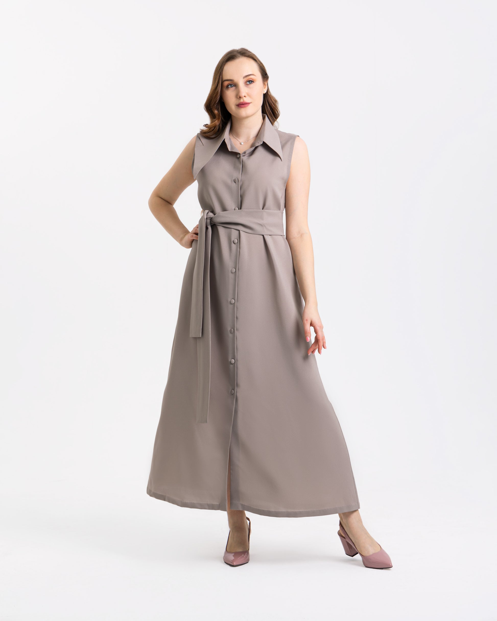 Flow through your day in effortless style with this sleeveless beige maxi dress. Designed for comfort and ease, it features a relaxed fit and a full-length silhouette that drapes beautifully with every step. The earthy brown hue adds warmth and versatility, making it perfect for everything from casual mornings to laid-back evenings. Soft, breathable, and endlessly wearable — this is the ultimate everyday dress with a touch of elegance.