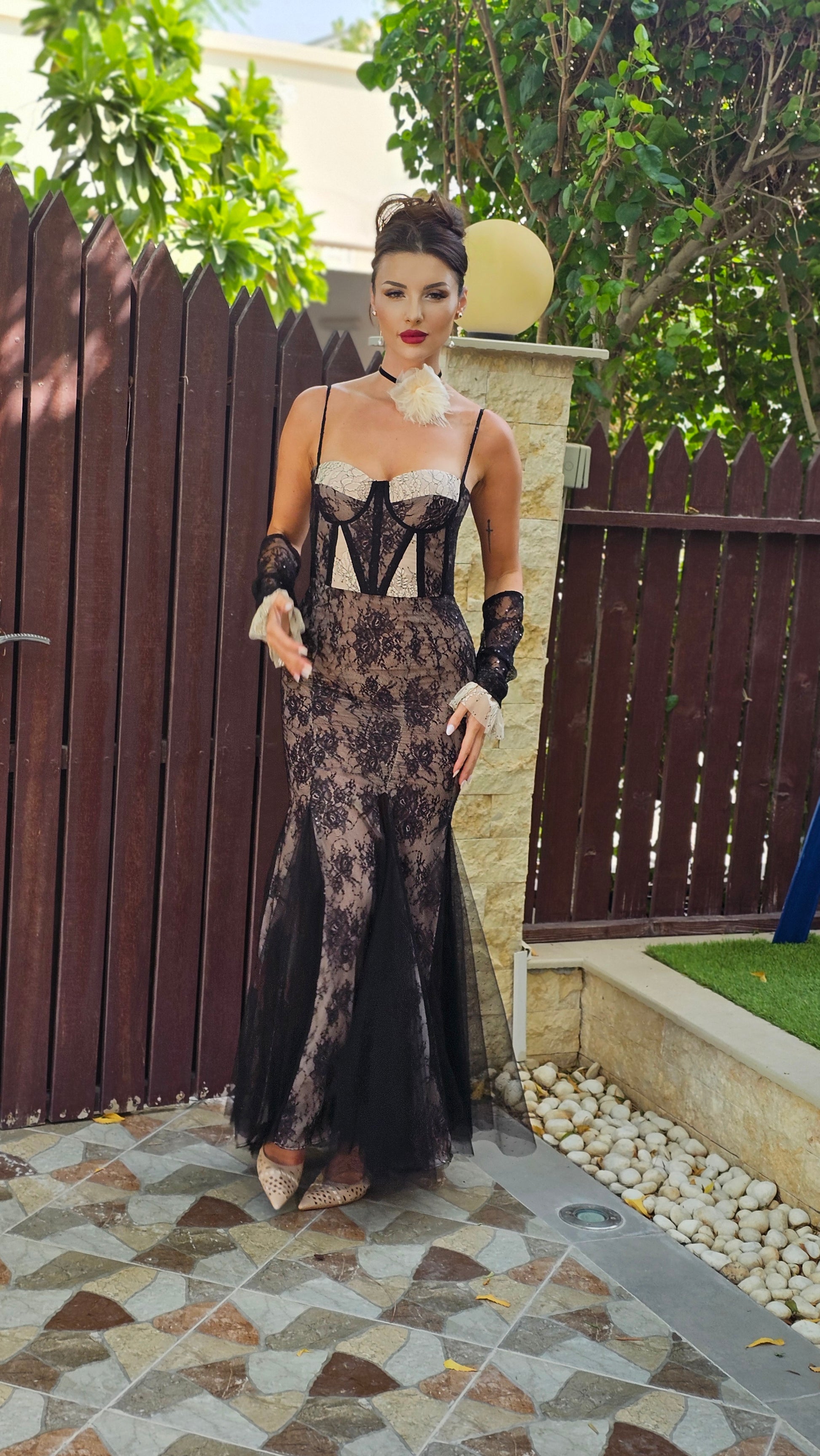 Graceful, feminine, and designed to enchant — this fitted lace dress is your perfect choice for weddings, engagements, or any special celebration. The delicate lace fabric beautifully contours the body, offering a flattering silhouette with a soft, romantic touch. With its timeless charm and elegant detailing, this dress captures the magic of the moment and makes you feel unforgettable.
