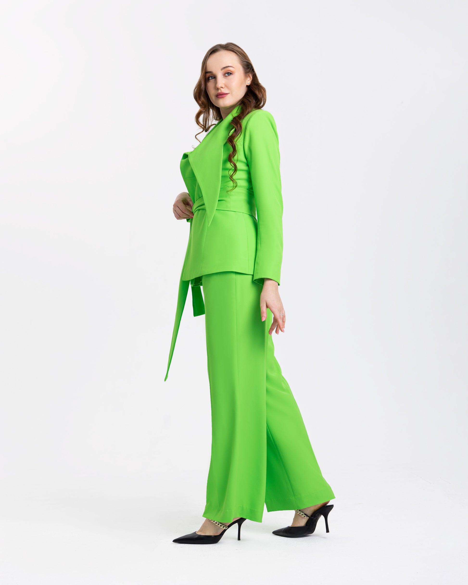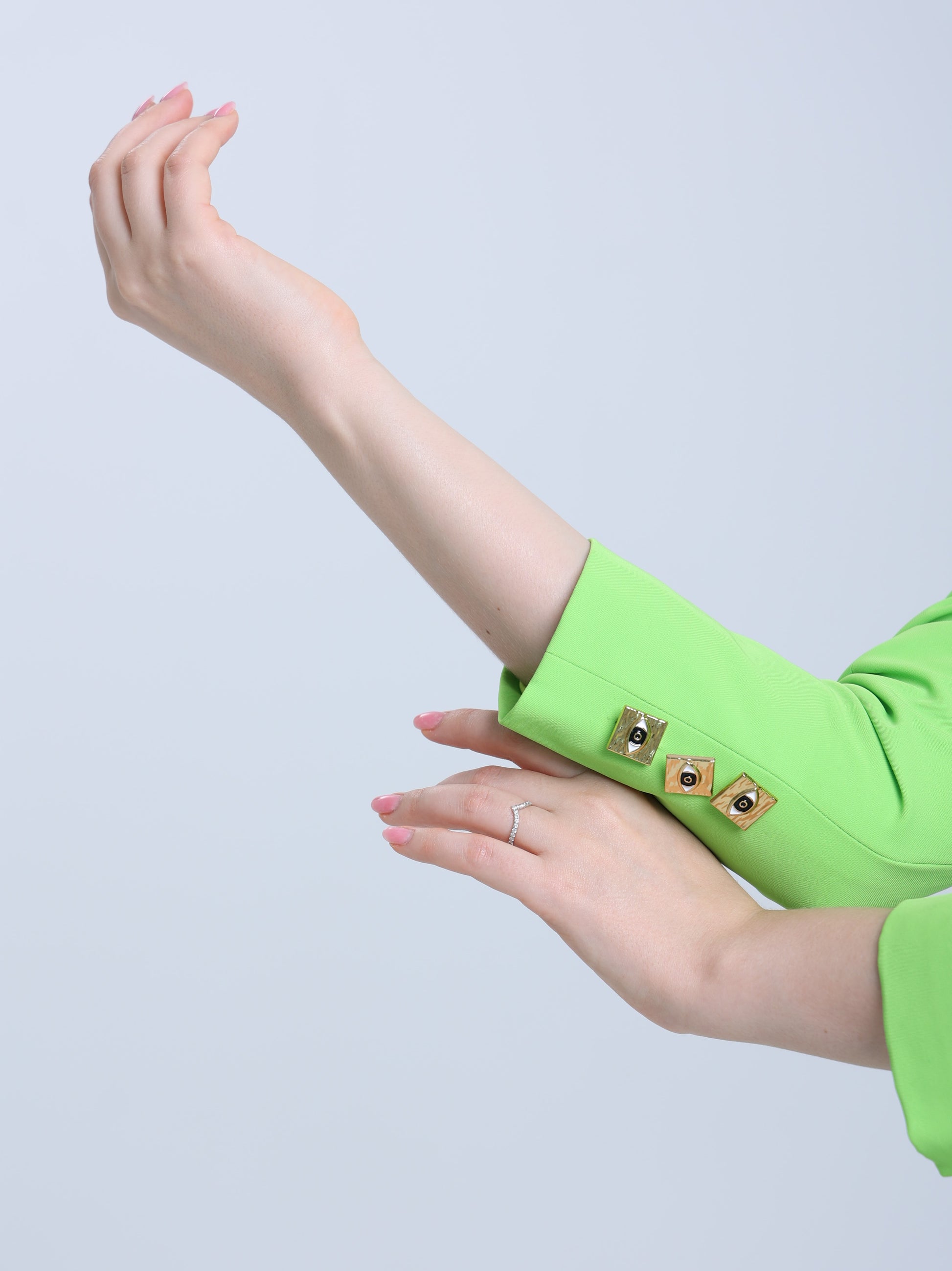 Make a powerful impression with this single-breasted neon green suit jacket, tailored for those who dare to stand out. Featuring classic notched lapels and a modern silhouette, this piece blends timeless sophistication with bold, contemporary flair. Crafted from lightweight crepe fabric, it offers effortless movement and a sleek finish. Whether you're stepping into a high-profile event or setting your own fashion rules, this suit is your statement of confidence and charisma.